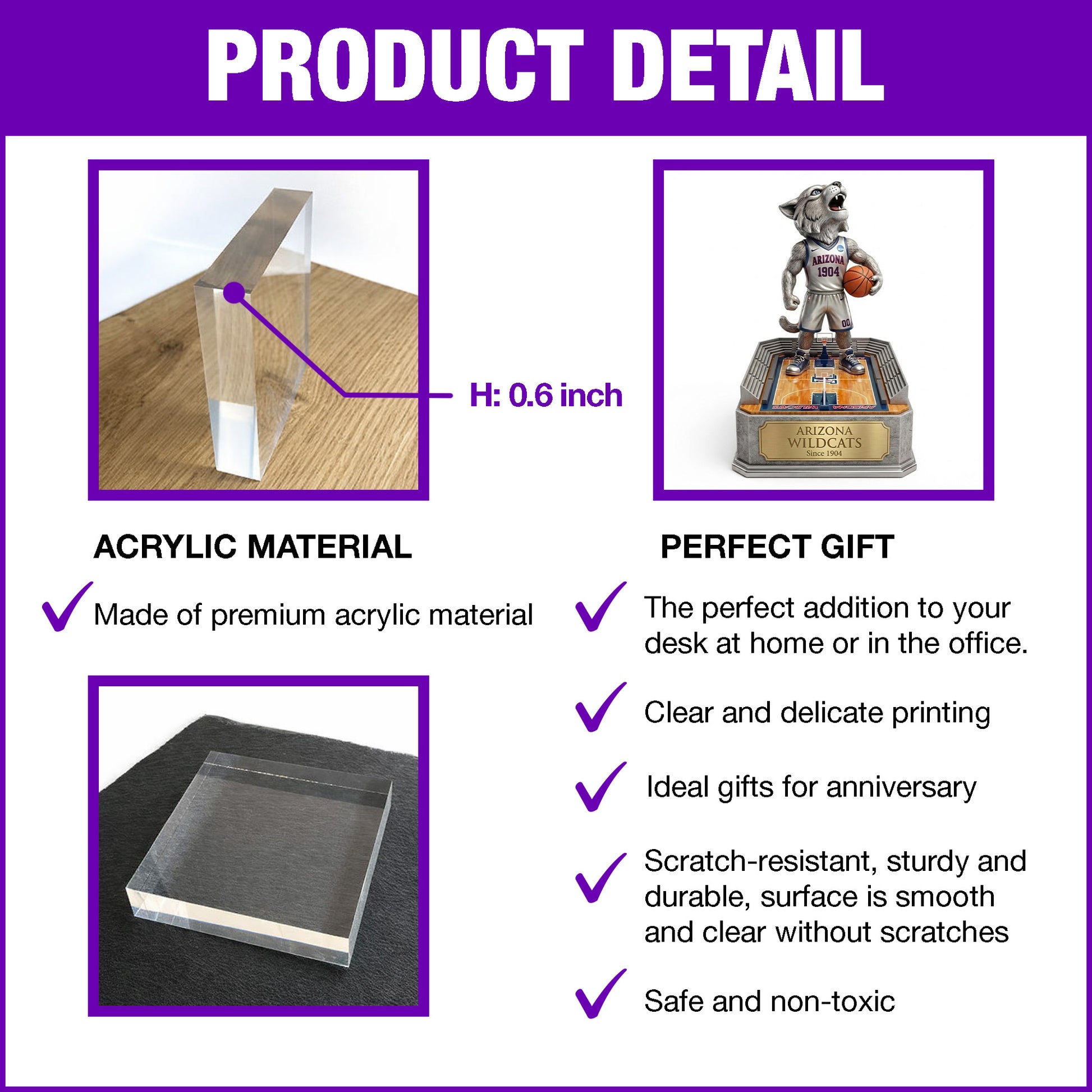 Crystal Clear Acrylic: 0.6-inch thick premium grade material with a glass-like finish that won't yellow over time. - Vivid 3D Depth: High-resolution UV printing on the back creates a striking "floating" effect with rich, saturated colors.
