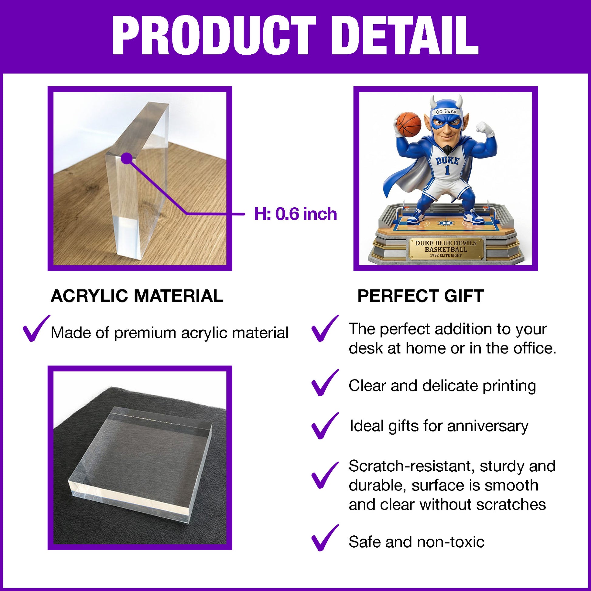 Durham Basketball Team - Acrylic Plaque Classic Fan Gift
