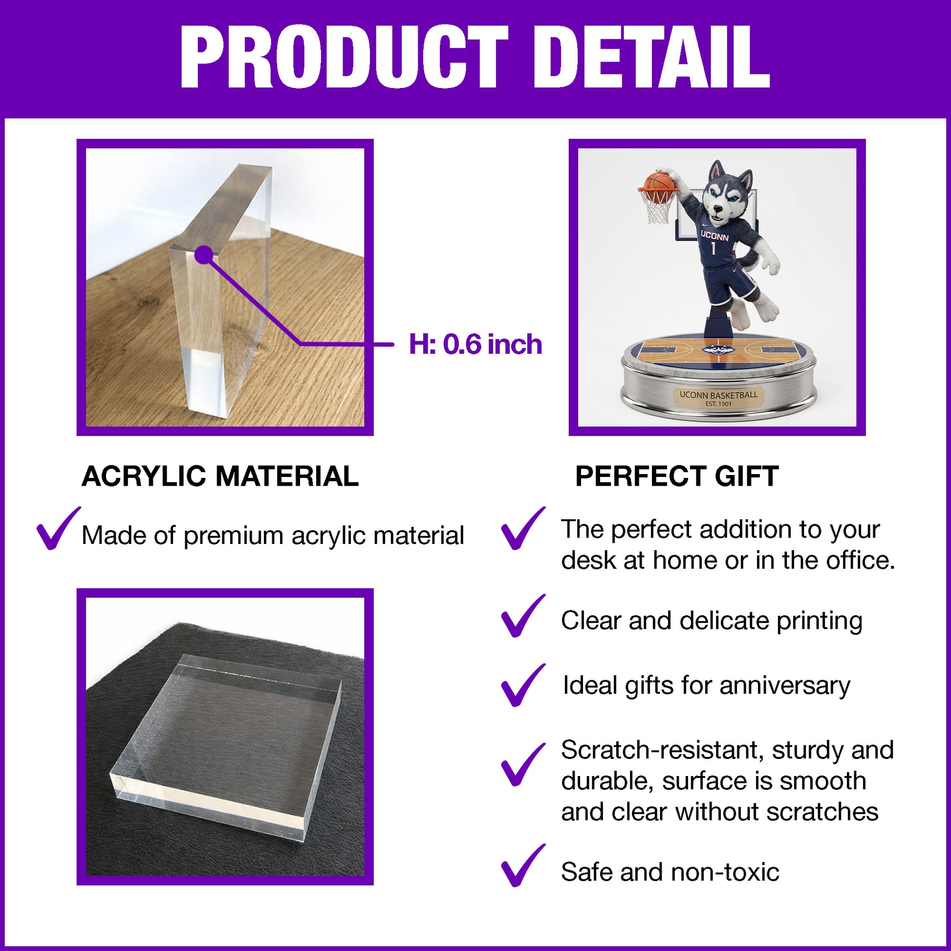 Crystal Clear Acrylic: 0.6-inch thick premium grade material with a glass-like finish that won't yellow over time. - Vivid 3D Depth: High-resolution UV printing on the back creates a striking "floating" effect with rich, saturated colors.