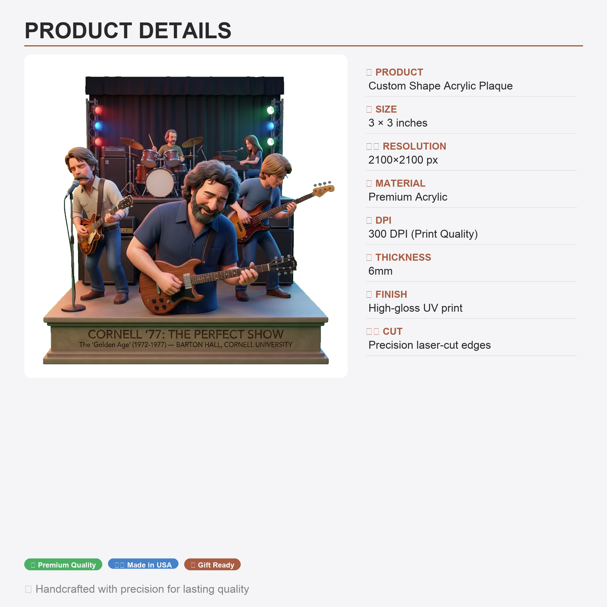 CORNELL '77: THE PERFECT SHOW - Acrylic Plaque Classic Fan Gift