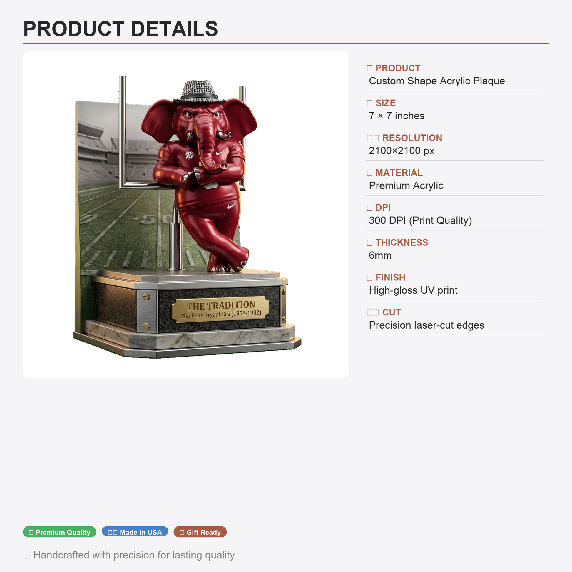 I appreciate the range of custom shapes available it allows for creativity and personalization in every plaque.